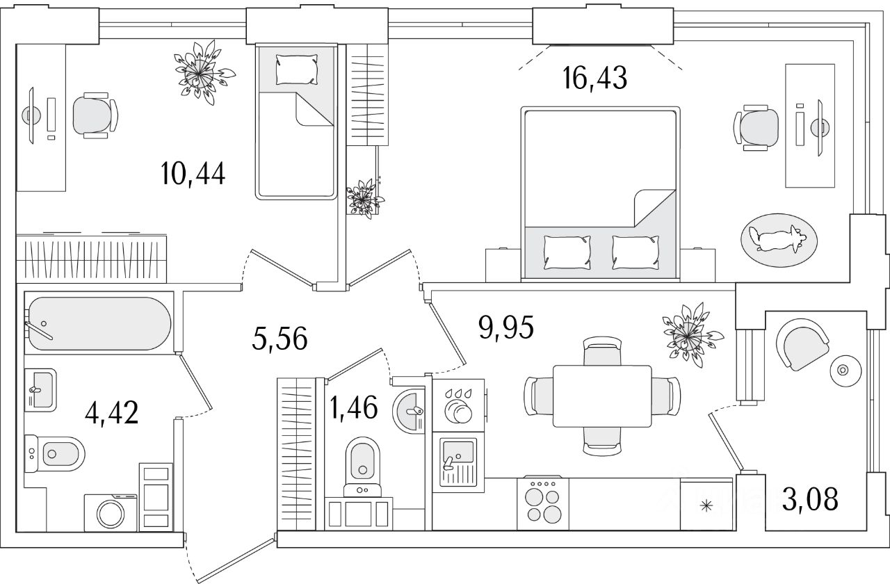 2-комн. от 45,45 м²