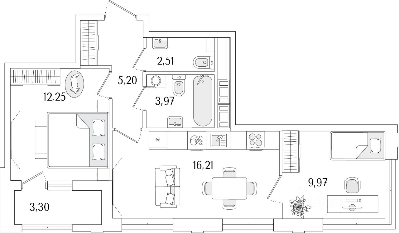 3-комн. от 75,51 м²
