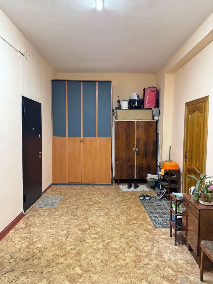 В комнате произведено зонирование (зона отдыха и зона кухни). Высота потолков 3,20 м.. Данный объект недвижимости отличный вариант для обустройства комнаты в отдельную 2-х этажную квартиру-студию. Кухня 11,5 кв.м., имеется несколько плит, стол для готовки. Душ. Туалет закреплен только за нашей комнатой. В квартире имеется отдельное тех помещение, где установлены стиральные машины.