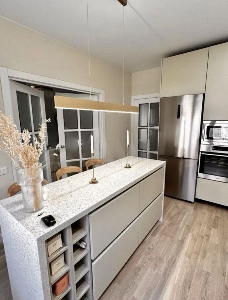 В квартире выполнен дизайнерский ремонт с использованием высококачественных и дорогих материалов. Практически вся мебель и техника от ведущих производителей остаются новому владельцу, что позволит вам заселиться без лишних хлопот.