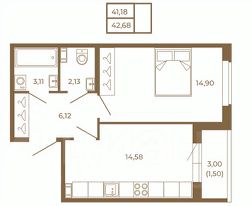 Продаётся 1-комнатная квартира в сданном доме (Златоглавая улица, 2к8 (Корпус 7.8)), срок сдачи: IV-кв. 2025, общей площадью 42.68 кв.м., на 1 этаже. ЖК расположен в Сертолово, мкр.Черная речка. 25 минут на машине до метро Парнас, либо 30 минут до метро Пр.Просвещения.