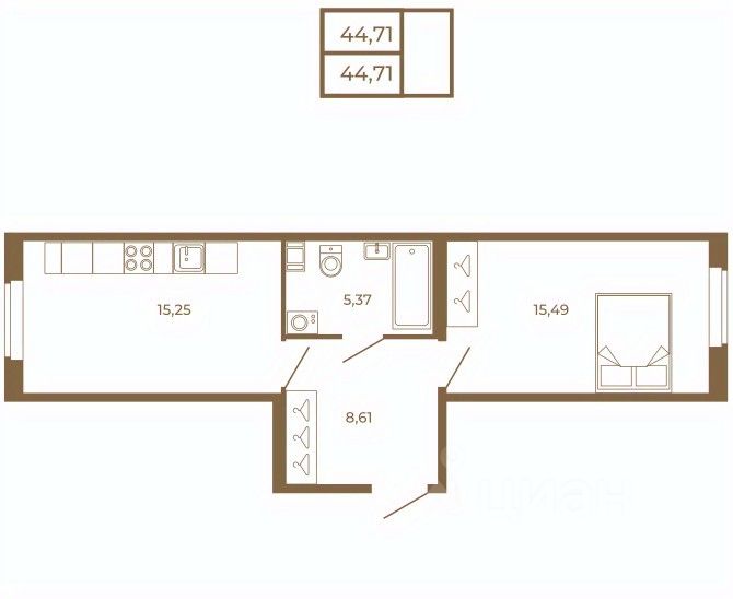 Продаётся 1-комнатная квартира в сданном доме (Златоглавая улица, 2к8 (Корпус 7.8)), срок сдачи: IV-кв. 2025, общей площадью 44.71 кв.м., на 1 этаже. ЖК расположен в Сертолово, мкр.Черная речка. 25 минут на машине до метро Парнас, либо 30 минут до метро Пр.Просвещения.