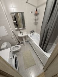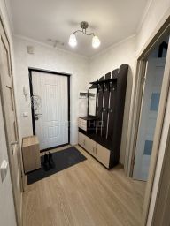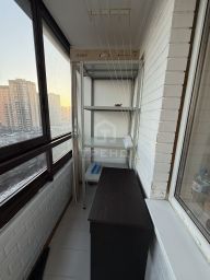 В квартире недавно делали ремонт, вся мебель и техника на фото остается, что позволяет сразу заселиться и наслаждаться новым жильём без дополнительных вложений. Есть совмещённый санузел и лоджия, где можно обустроить небольшое место для отдыха или разместить вещи на стеллаже. Также есть гардеробная.