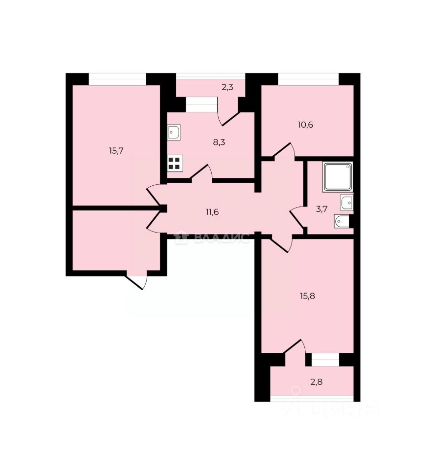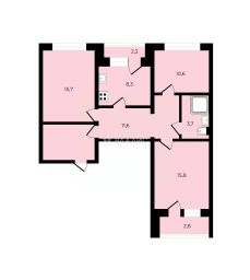 Площадь: 65,6 м² — просторно для семьи.