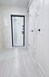 В квартире выполнен качественный ремонт, заменена электрика, выровнены полы и стены, поменяны входная и межкомнатные двери, натяжные потолки. На окнах установлены стеклопакеты, заменены радиаторы отопления.