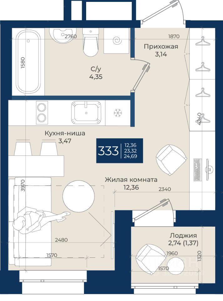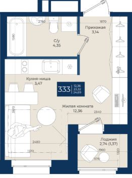 Продаётся студия в строящемся доме (Корпус Б), срок сдачи: IV-кв. 2026, общей площадью 24.69 кв.м., на 9 этаже. Новый жилой комплекс "Новатория" от застройщика "ГК NovaStroy" расположен по адресу: Россия, Ленинградская область, Ломоносовский район, Аннинское городское поселение, городской посёлок Новоселье, Центральная