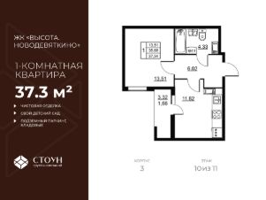 Продается однокомнатная квартира в жилом комплексе "Высота. Новодевяткино" от ГК СТОУН нa 10 этаже. Общaя площадь cоcтaвляeт 37.34 кв. м.