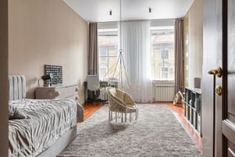 Продается трехкомнатная квартира в доходном доме. Пространство организовано для семьи: отдельная спальня, гостиная с действующим камином, детская. Всё — "под ключ".