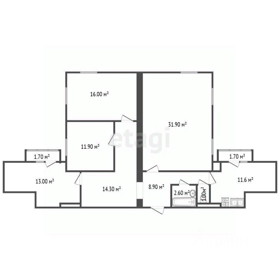 • Две спальни: 11,9 м² и 13 м²