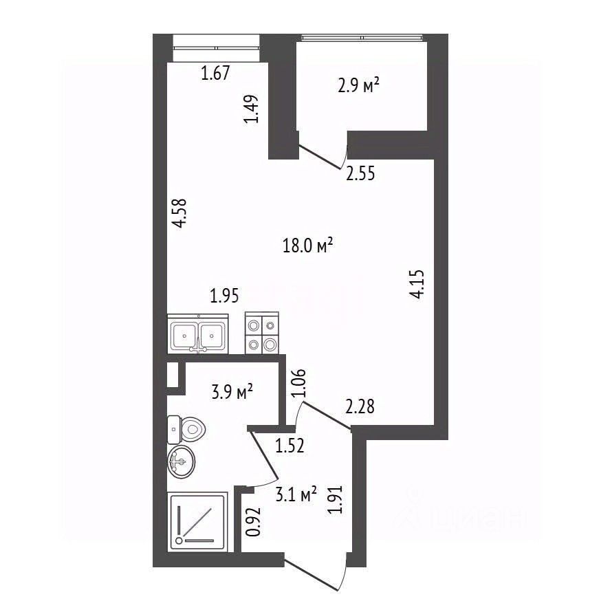 Просторная квартира-студия площадью 25 кв. м в новом жилом комплексе "Солнечный город" демонстрирует образец рационального использования пространства.