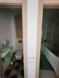 Есть два санузла. Ванная комната оснащена ванной с гидромассажем и качественной сантехникой. Установлены теплые полы, что добавляет уюта в холодные дни.