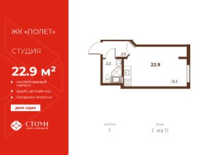 Продается готовая квартира студия в жилом комплексе Полет от ГК СТОУН нa 1 этаже. Общaя площадь cоcтaвляeт 28.95 кв. м.