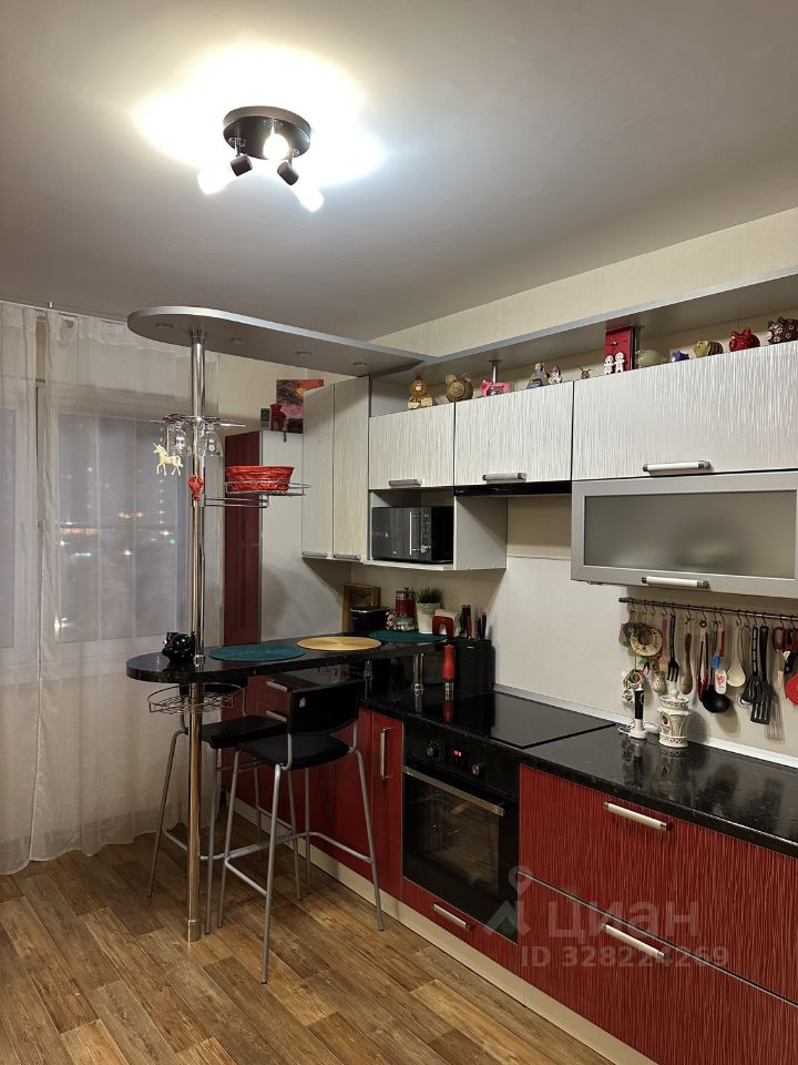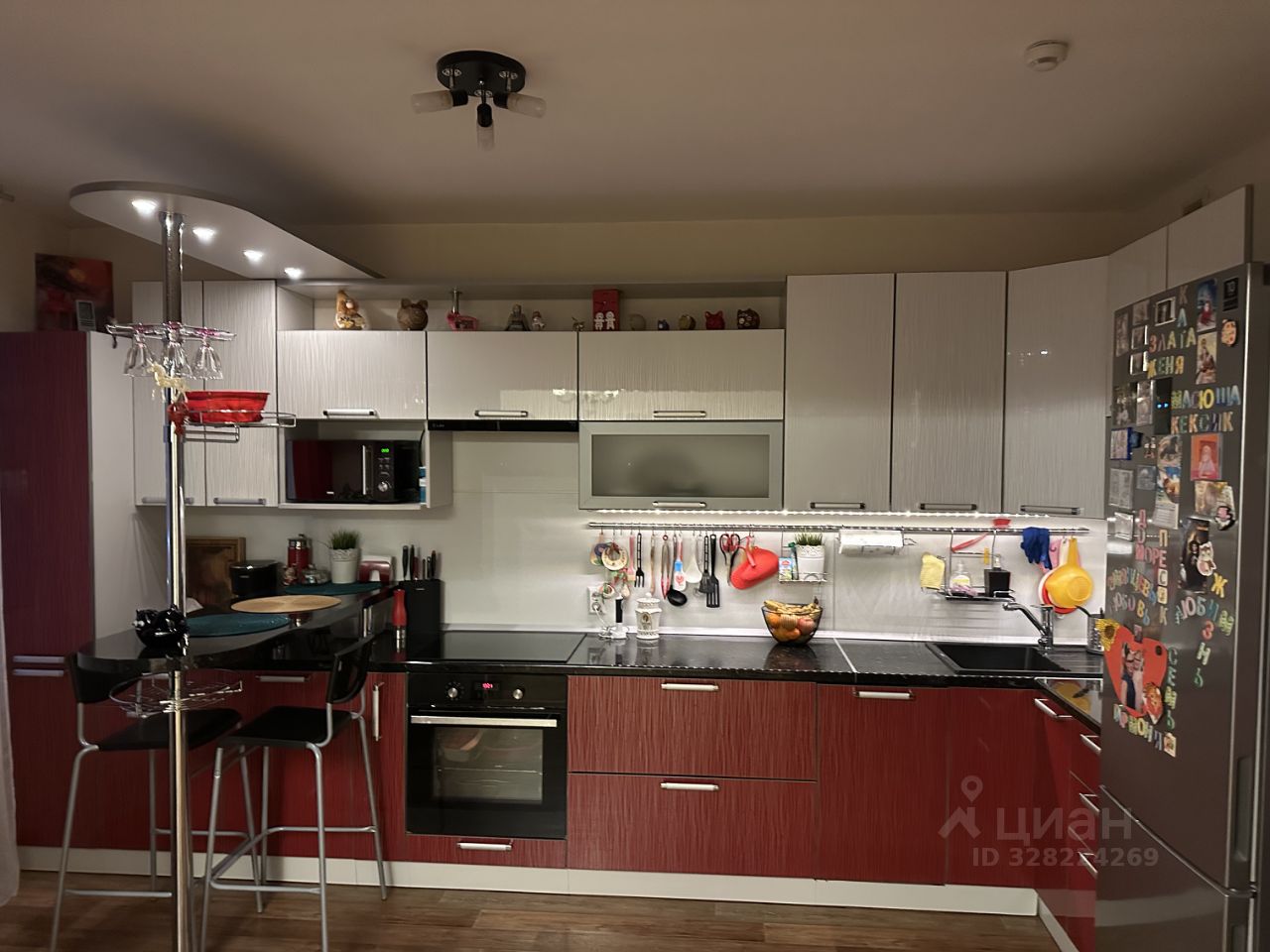 Встроенная Кухня варочная панель, духовой шкаф, посудомоечная машина, барные стулья, стол.