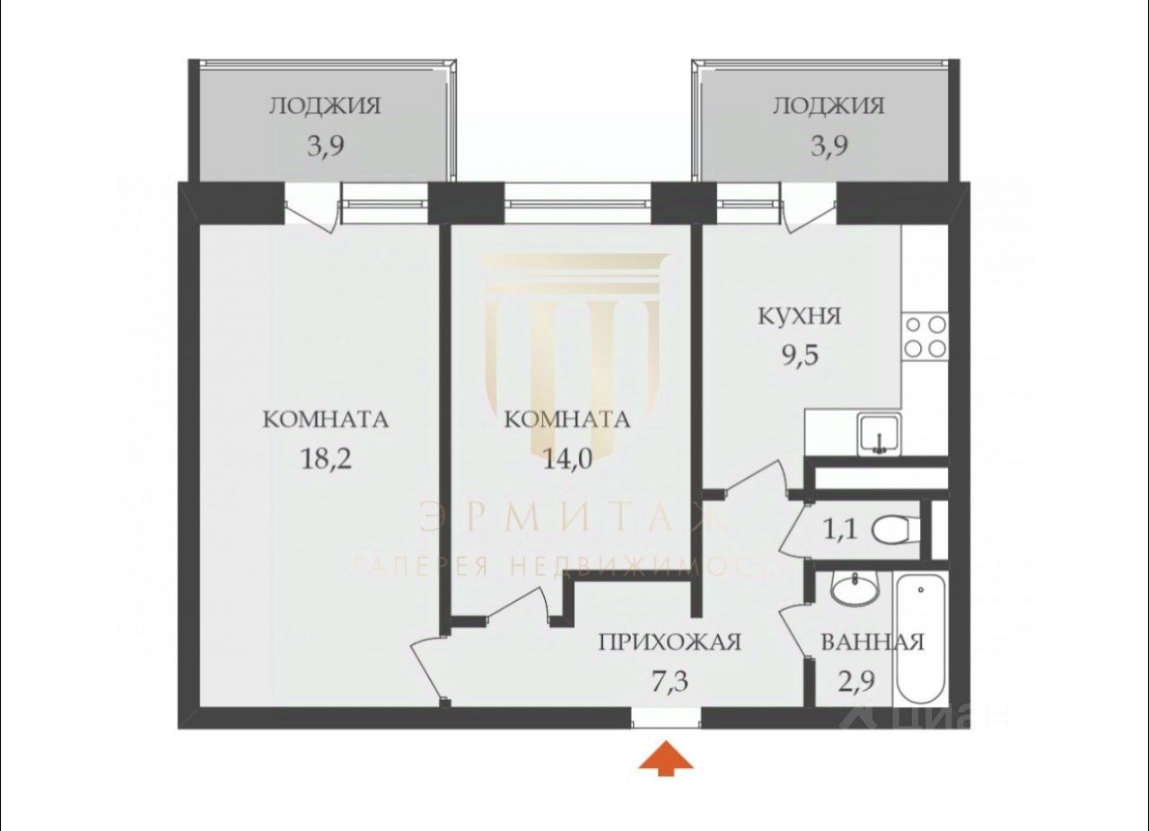 Комнаты: Изолированные 18,2 + 14,0 м².