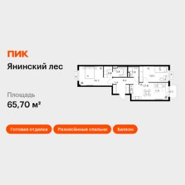 Продаётся 2-комн. квартира площадью 65,7 кв.м на 13 этаже 15 этажного дома (Корпус 2, Секция 2) проекта ПИК Янинский лес. Светлый просторный подъезд на уровне земли, функциональная планировка, большие окна, c отделкой.