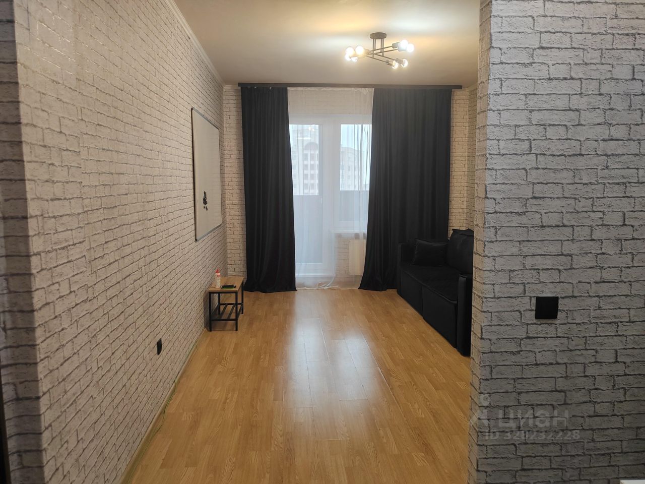 В квартире сделан косметический ремонт. Комната отделена от кухонной зоны перегородкой. Установлены новые стеклопакеты. Заменена входная дверь, установлен умный замок. В квартире остается все что на фото: новый дорогой диван, холодильник, стиральная машинка, электрическая плита, стеллаж, стул, напольная вешалка.