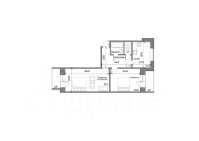 Квартира площадью 60.7 м² выходит на две стороны света и имеет 2 лоджии со стороны комнат с системами хранения для сезонных вещей.