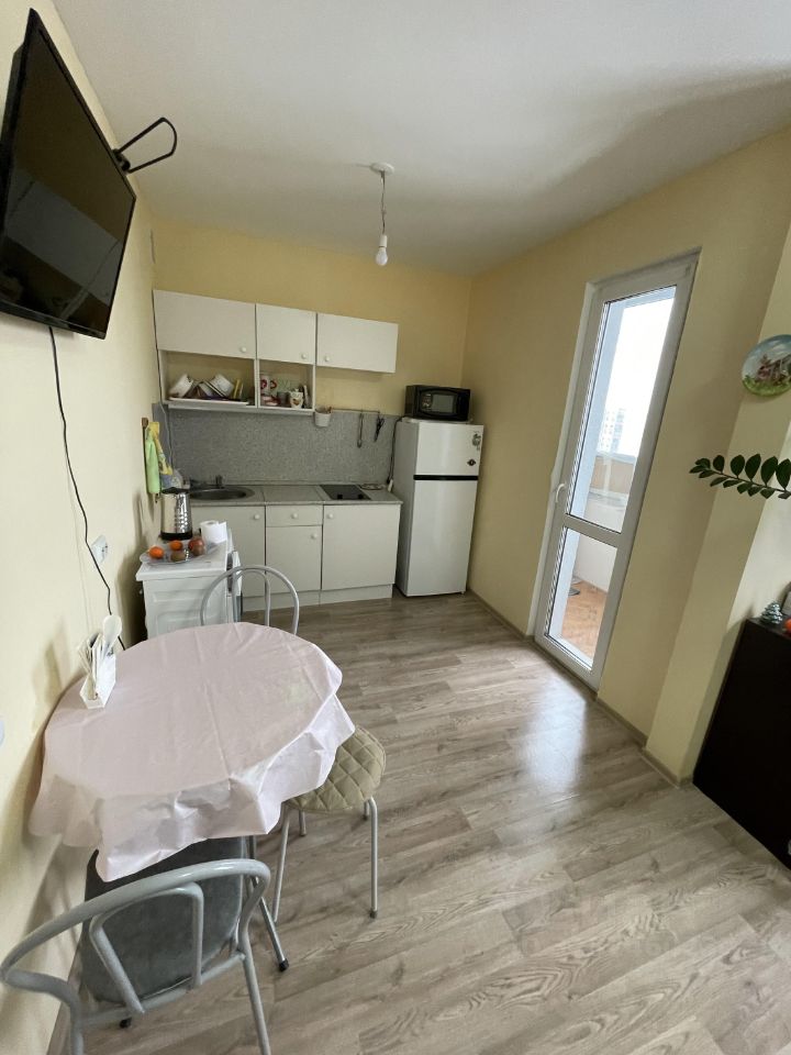 В квартире сделан качественный евроремонт. Установлена современная мебель и техника, поэтому можно сразу заехать и жить без дополнительных вложений. Планировка студии рациональна, совмещенный санузел оснащен всей необходимой сантехникой.