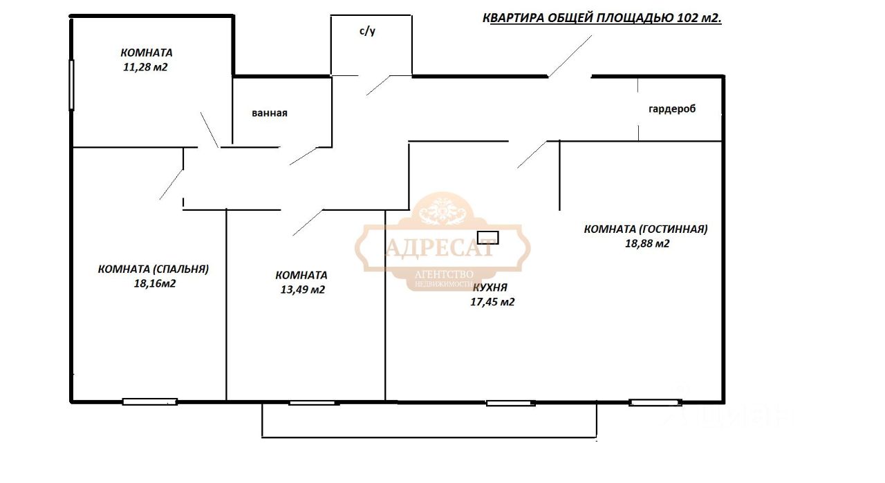 Общая площадь квартиры - 102 м2, расположена на 3 этаже 10 этажного дома. Санузел раздельный.