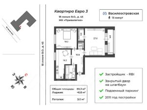 Представлена к продаже дизайнерская Евро 3 квартира в ЖК "Привилегия" - современный жилой комплекс с камерной атмосферой для тех, кому важно оставаться в центре. Локация расположена в исторической части Санкт-Петербурга - Васильевском острове, на 18 линии д. 45. Жилой дом от надежного застройщика RBI построен в 2011 году. Кирпично-монолитная технология, небольшая этажность, закрытый на шлагбаум двор, круглосуточная охрана и видеонаблюдение, отапливаемый подземный паркинг. Пешая доступность до двух станций метро. Квартира располагается на комфортном 4 этаже, вид из окон на две стороны. Планировка: Функциональная и логичная планировка, где каждый уголок продуман для максимального удобства и гармонии - идеально подойдет для вашей семьи. Просторная кухня-гостиная 16,2 м² с полным набором необходимой техники для приготовления кулинарных шедевров и уютных семейных ужинов. Изолированная спальня для взрослых 18,2 м², где вы легко сможете расслабиться после напряженного дня. Большой зал 27 м² прекрасен как для приема гостей, так и для полноценного отдыха. Две вместительные гардеробные - редкая находка для тех, кто ценит порядок и комфорт. Просторная ванная комната 7.0 м² с полноразмерной ванной для релакса и SPA процедур. Ремонт и материалы: Ремонт в квартире выполнен по индивидуальному проекту с использованием только высококачественных и премиальных материалов. Максимально продуманная эргономика и внимание к деталям, надежные немецкие инженерные системы, настраиваемое освещение и микроклимат - все готово для комфортного проживания, никаких компромиссов. Для тишины и спокойствия в стенах выполнена шумоизоляция. Элитная сантехника - Webert, Fima Carlo Frattini, Италия Керамогранит на стенах в ванной - Atlas Concorde, Италия Керамогранит на стенах на кухне - Petracers Tango Rock, Италия Керамогранит на полу в ванной, кухне, холле - Museum Iron, Испания Межкомнатные двери скрытого монтажа - Rimadesio, Италия Обои на стенах - под заказ, Италия Меблировка: Мебель в квартире представлена ведущими итальянскими брендами и мебельными фабриками - воплощение классической элегантности и безупречного стиля Италии. В спальне - Corte Zari Elegance, в ванной комнате - Gaia Mobili, на кухне - Seven Sedie Reproductions. Кухонный гарнитур изготовлен по индивидуальному проекту под заказ, а дополняет его столешница из акрилового камня длиной 6 метров. Техника на кухне премиум-класса - Faber Drop, Kuppersbusch, Liebherr, Neff. Микроклимат: Теплые полы во всех зонах с керамогранитом с индивидуальной регуляцией. Сплит система Mitsubishi с выводом внутренних блоков в каждую комнату. Стальные трубчатые радиаторы - Arbonia, Германия. Бойлер на случай отключения горячей воды. Вся мебель и техника остается в квартире для комфорта нового владельца. Дополнительно можно приобрести машиноместо в подземном паркинге в этом доме. Один взрослый собственник, никто не зарегистрирован, без обременений. В собственности более 5-ти лет. Легкая альтернатива, быстрый выход на сделку.