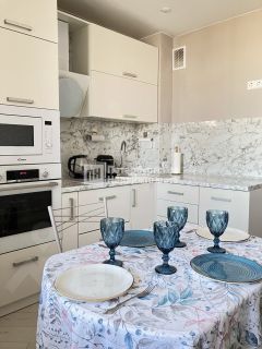 -Готовое решение: ремонт в современном стиле, встроенная техника Bosch (стиральная, посудомоечная машина, духовка), микроволновая печь, индукционная варочная поверхность. Вся мебель выполнена на заказ.