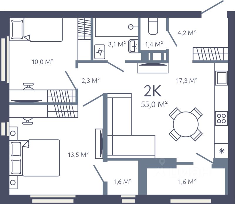 Продаётся 2-комнатная квартира в строящемся доме (Дом 1), срок сдачи: I-кв. 2028, общей площадью 55 кв.м., на 9 этаже. Жилой комплекс "Лендлер" - это современный малоэтажный проект комфорт-класса, расположенный в динамично развивающемся районе Кудрово, в доступности от станции метро "Улица Дыбенко".