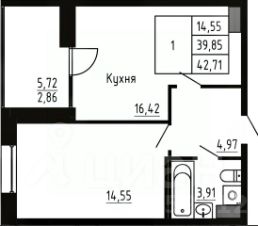 Общая площадь квартиры составляет: 39,8 кв.м., с учетом лоджии (5.7 кв.м), общая площадь квартиры составляет: 45,6 кв.м.