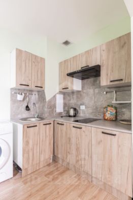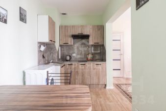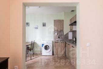 Просторная студия с удобным зонированием — есть чётко выделенное место под кухню и жилую зону