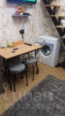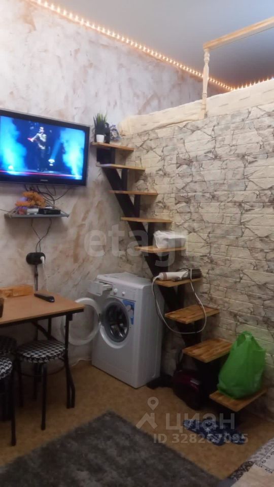 Помещение полностью готово к проживанию: продуманная планировка включает функциональную кухонную зону с гарнитуром и варочной панелью, компактный санузел с душевой кабиной и навесными шкафами. Основное пространство организовано с учетом максимального удобства — здесь размещен двухспальный диван, рабочий стол и вместительный шкаф для хранения. Дополнительное спальное место оборудовано на втором уровне, что позволяет комфортно разместить до четырех человек. Наличие стиральной машины избавляет от необходимости посещения прачечных.