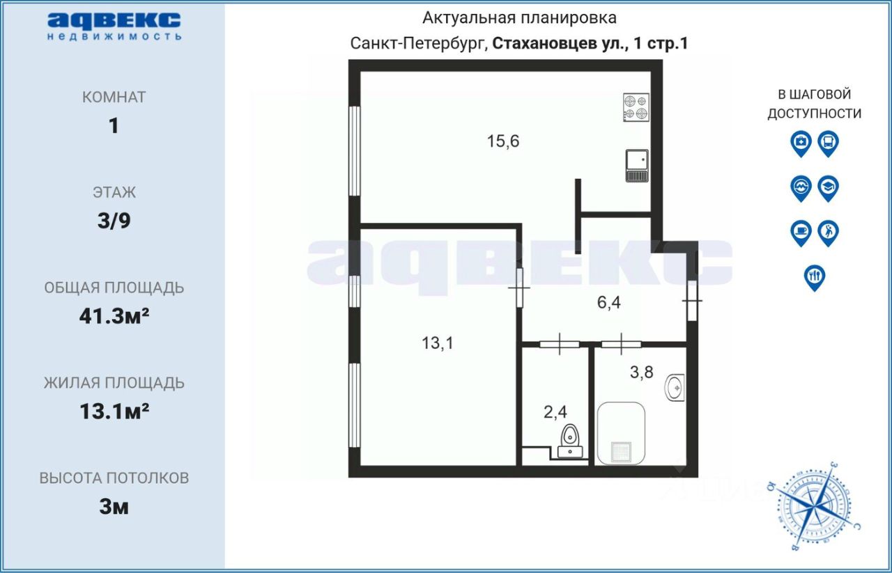 Ст.м. Новочеркасская 5 мин. пешком. Невский проспект в 20 мин. ходьбы. Близость ТРЦ Охта Молл.