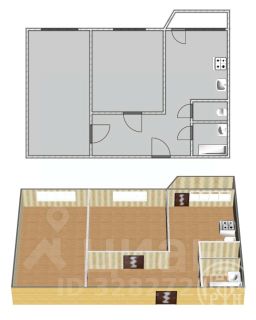 Общая площадь квартиры 59м2. Комнаты изолированные 20,4 и 15,2м2. Просторная кухня 12м2. Из комнаты вход на застекленную лоджию 2,2м2. Просторный холл 11 м2.
