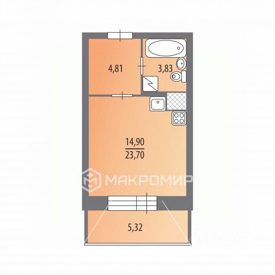+ Санузел с ванной.