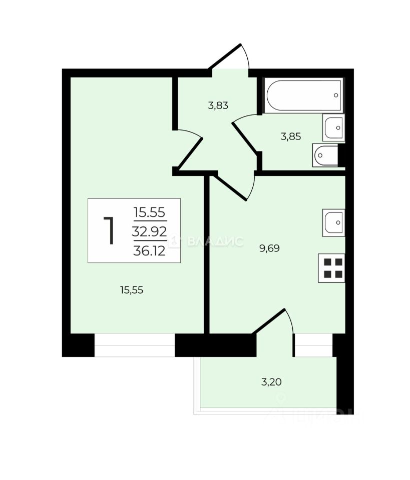 Балкон - 3,2 кв.м