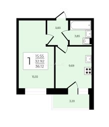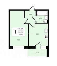 Жилая площадь - 15,55 кв.м