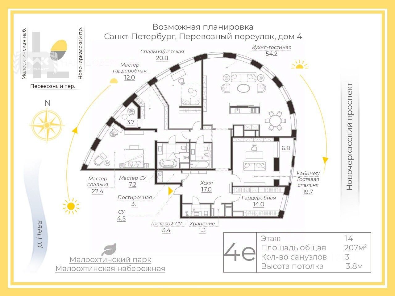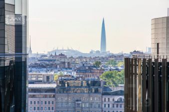 Видовой пентхаус в ЖК "Новый город" с окнами в пол и высотой потолка 3,8 м. Много окон, много света, много воздуха. Вид на Неву, мост Петра Великого, парк, церковь и панораму города.