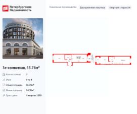 Уникальная, функциональная европланировка, большая кухня-гостиная 18.9 м², вместительная прихожая 3.63 м². Общая площадь квартиры - 55.78 м², жилая 24.38 м².