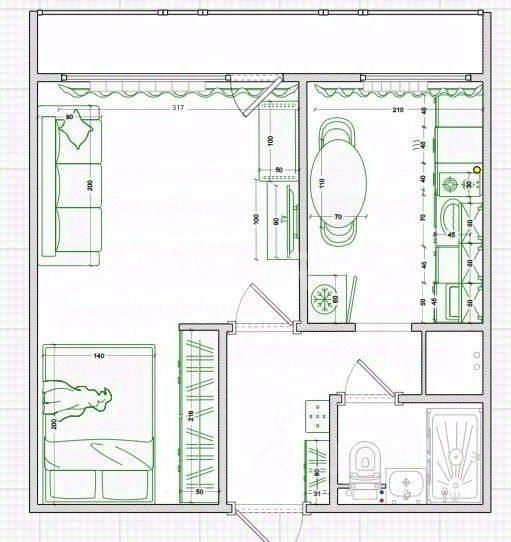 Общая площадь 26,7 м2, выделена спальная зона, зона отдыха и хранения вещей