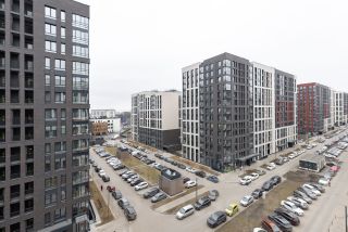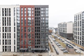 Вид из окон на современный благоустроенный двор.