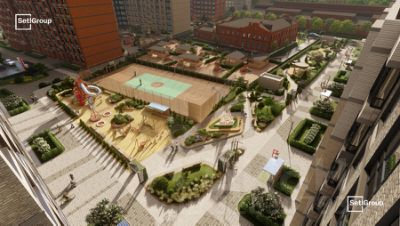 • Первая береговая линия Невы с выходом на набережную с ротондой и рекреационными зонами