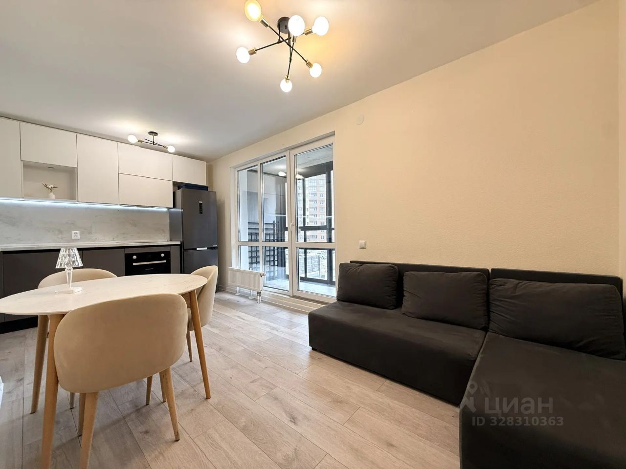 Кухня-гостиная 15.9 м², с выходом на застекленный панорамный балкон, площадью 5.16 м², который можно использовать как дополнительное пространство для зоны отдыха, рабочее место, место для хранения или просто как уютный уголок для утреннего кофе.Направление света с кухни-гостиной на СЕВЕР.