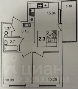 Общая площадь квартиры — 47.2 м², БЕЗ ЕЧЕТА балкона