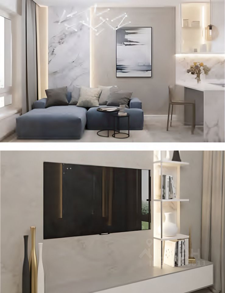 Описание отделки можно найти в фото. На данном этапе можно согласовать дополнительные изменения в дизайн-проекте с застройщиком.