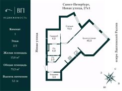 Двухкомнатные апартаменты, в ЖК бизнес класса Северный Версаль