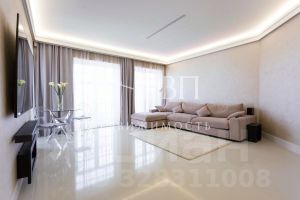 Все полы в квартире с подогревом, окна в пол, потоки 3,10 м, шторы на окнах имеют электропривод ( можно ставить таймер на раскрытие-закрытие). В гостинной полы наливные. Стены покрыты венецианской штукатуркой.