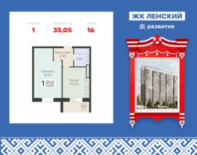 "В продаже квартира площадью 35.05 кв. м с чистовой отделкой на 16 этаже 16 этажного дома. Квартира находится в 7 корпусе: