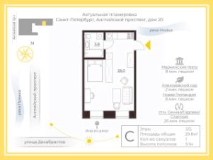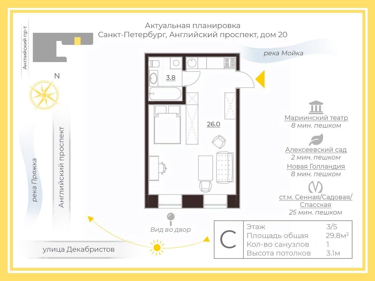 Арт. 133048812 Уникальное предложение для прагматичных покупателей, влюбленных в Петербург! Продаётся обособленная студия площадью 30 м² в историческом доме на Английском проспекте.
