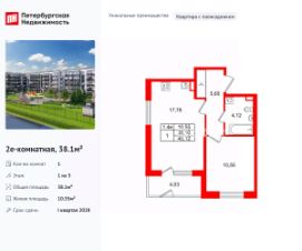 Уникальная, функциональная европланировка, большая кухня-гостиная 17.78 м², просторная прихожая 5.65 м². Общая площадь квартиры - 38.1 м², жилая 10.55 м², высота потолка 2.77 м.