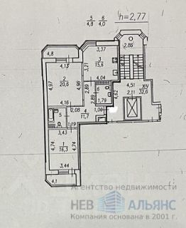 Общая площадь 73 кв.м., кухня-15,6 кв.м., высота потолков 2,8 м, две лоджии, два санузла.
