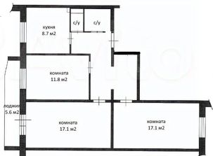 • Идеальная планировка: три изолированные комнаты (две по 17 м² и одна 12 м²), кухня-гостиная 9 м², просторный холл со встроенным шкафом для хранения