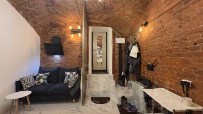 Апартаменты расположены на первом этаже восьмиэтажного кирпичного дома, построенного в 1860 году. Высокие потолки (3,2 м) добавляют пространству воздуха и света.